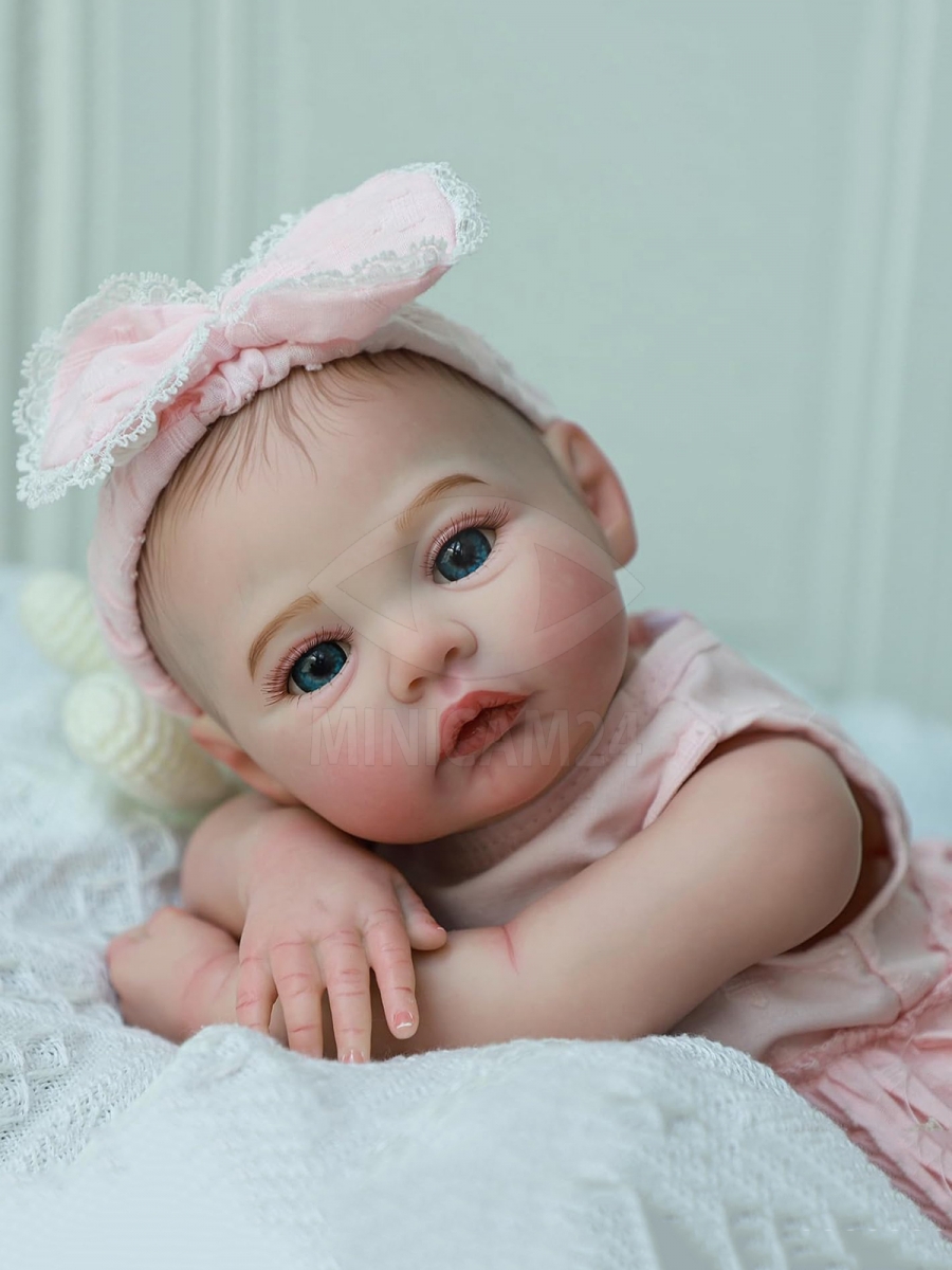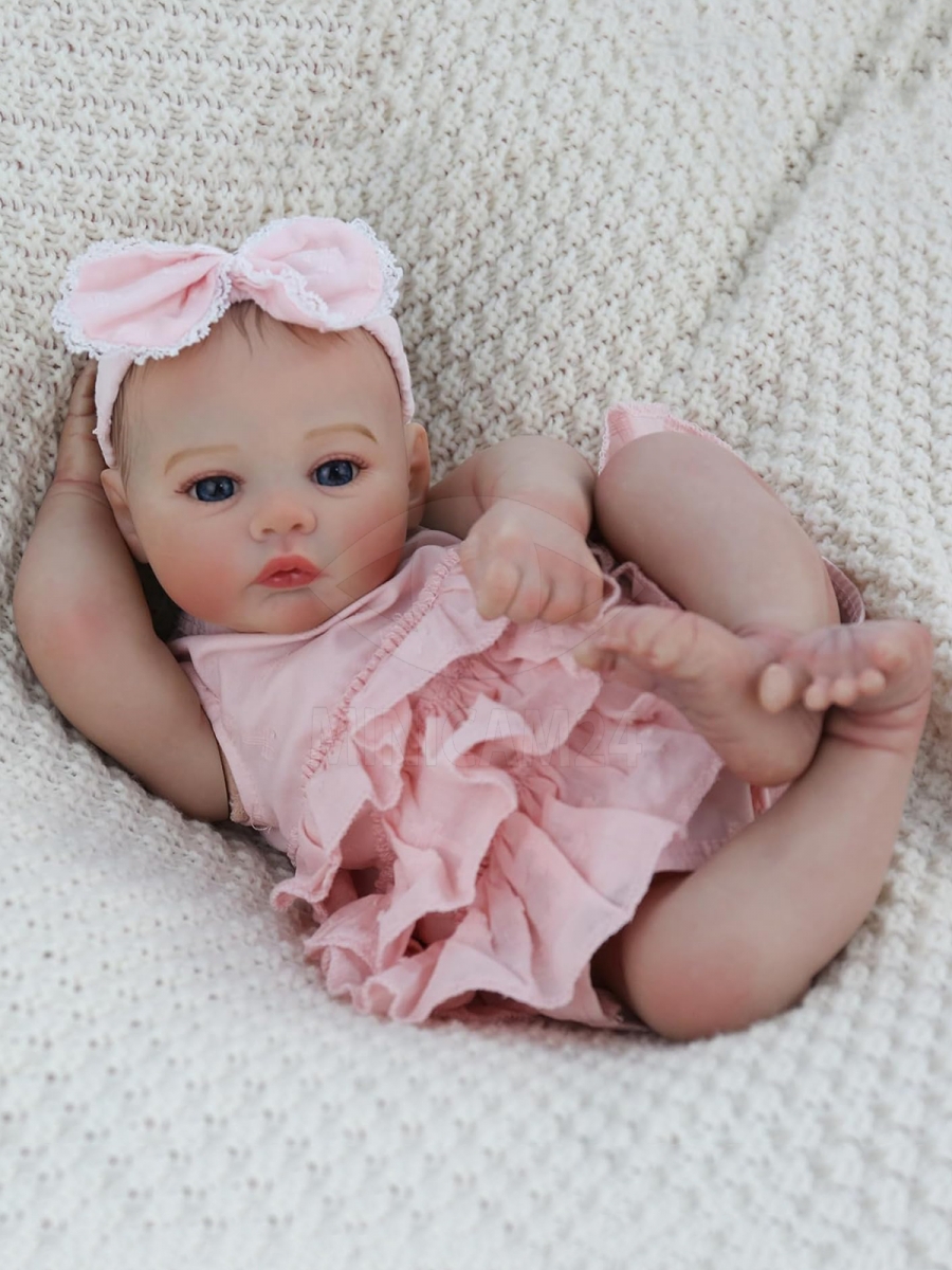 Силиконовая кукла Реборн девочка Мика – это реалистичная кукла-младенец ростом 45 см, выполненная из винил-силикона. Её мягкое тело и подвижные пальчики делают игрушку максимально естественной на ощупь. Детализированная проработка элементов, включая вены, капилляры, мраморность кожи, покраснения, складочки и ноготочки, создаёт эффект настоящего младенца, передавая естественные черты ребёнка.